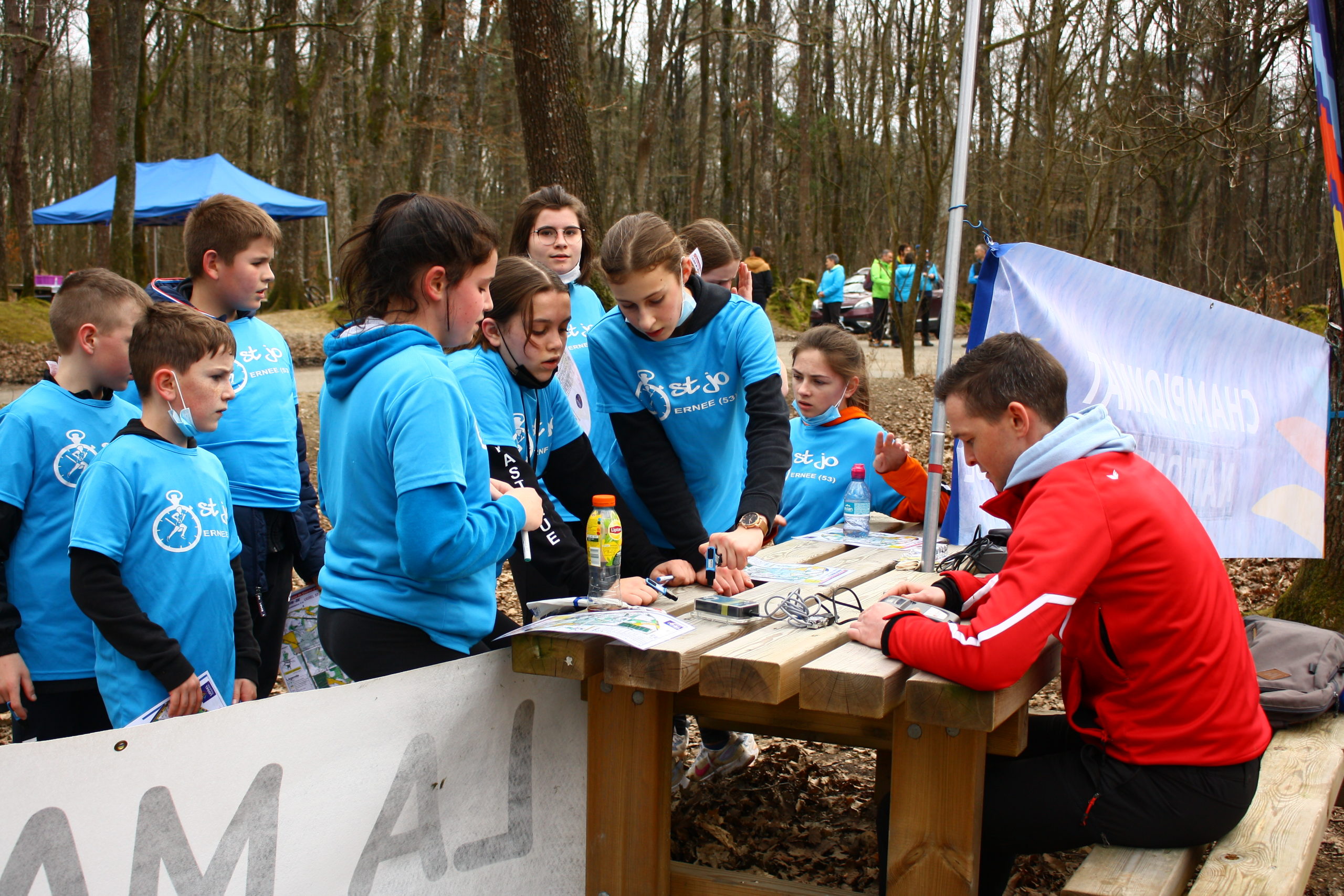 Ce mercredi 2 mars se déroulait au bois de l’Huisserie, les championnats départementaux de course d’orientation. Sous un ciel clément, au petit matin, les professeurs de St Michel château Gontier et Meslay ont pu installer les 47 balises.